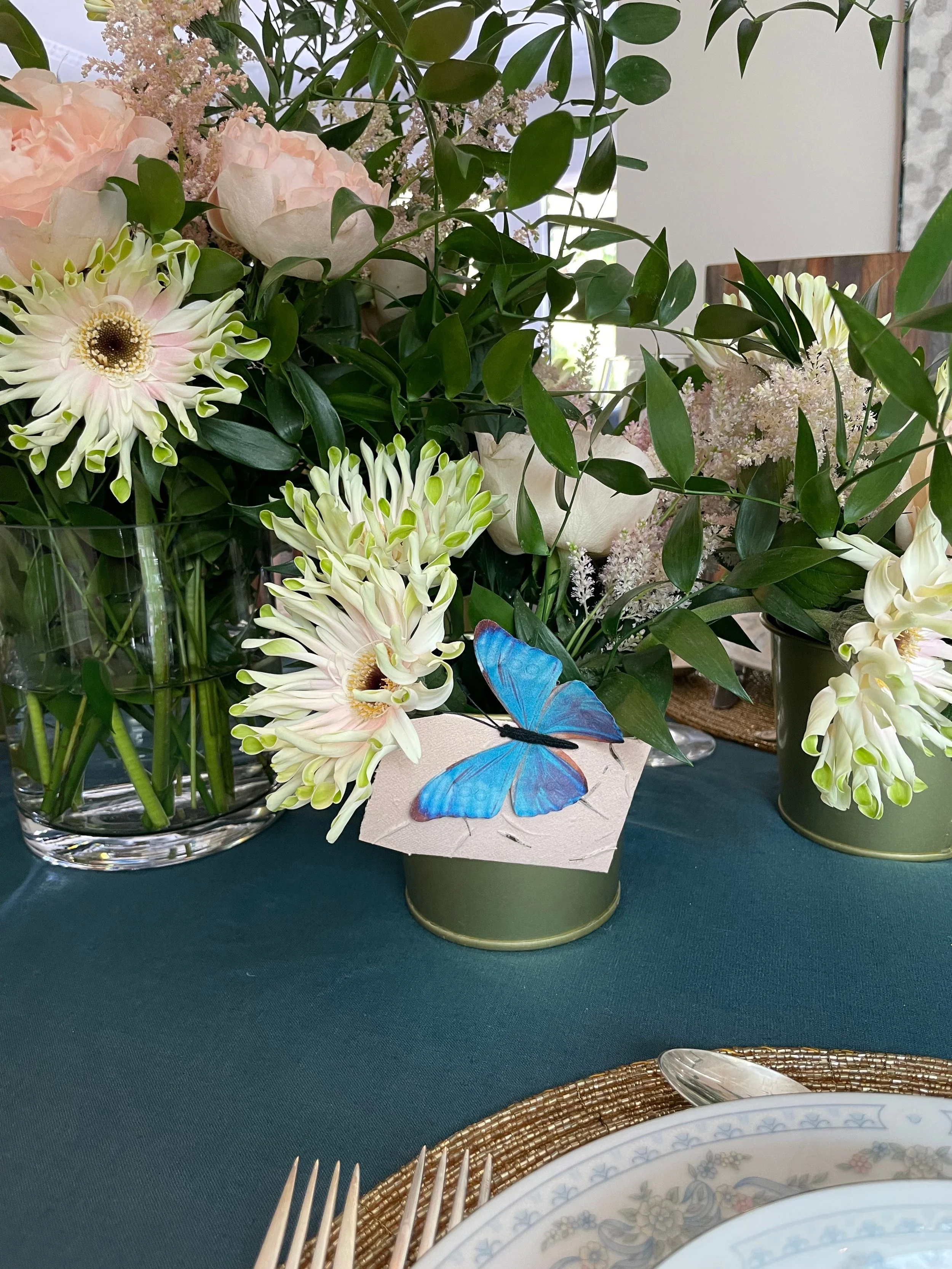 For dessert, we indulged in chocolate cake, to remind us of the sweetness of life. With this, each woman was presented with her next step, the completion process of this ceremony. She chose a personal bouquet from the table, and her sack of shit. On that bouquet was a butterfly that held a card of seeded paper. On these cards, each woman was to write her intention for the initiation of this moment. What was that special block her soul wanted to walk through right now? Take that card, those intentions, and declare to the world what she was leaving behind, and what she was stepping into.